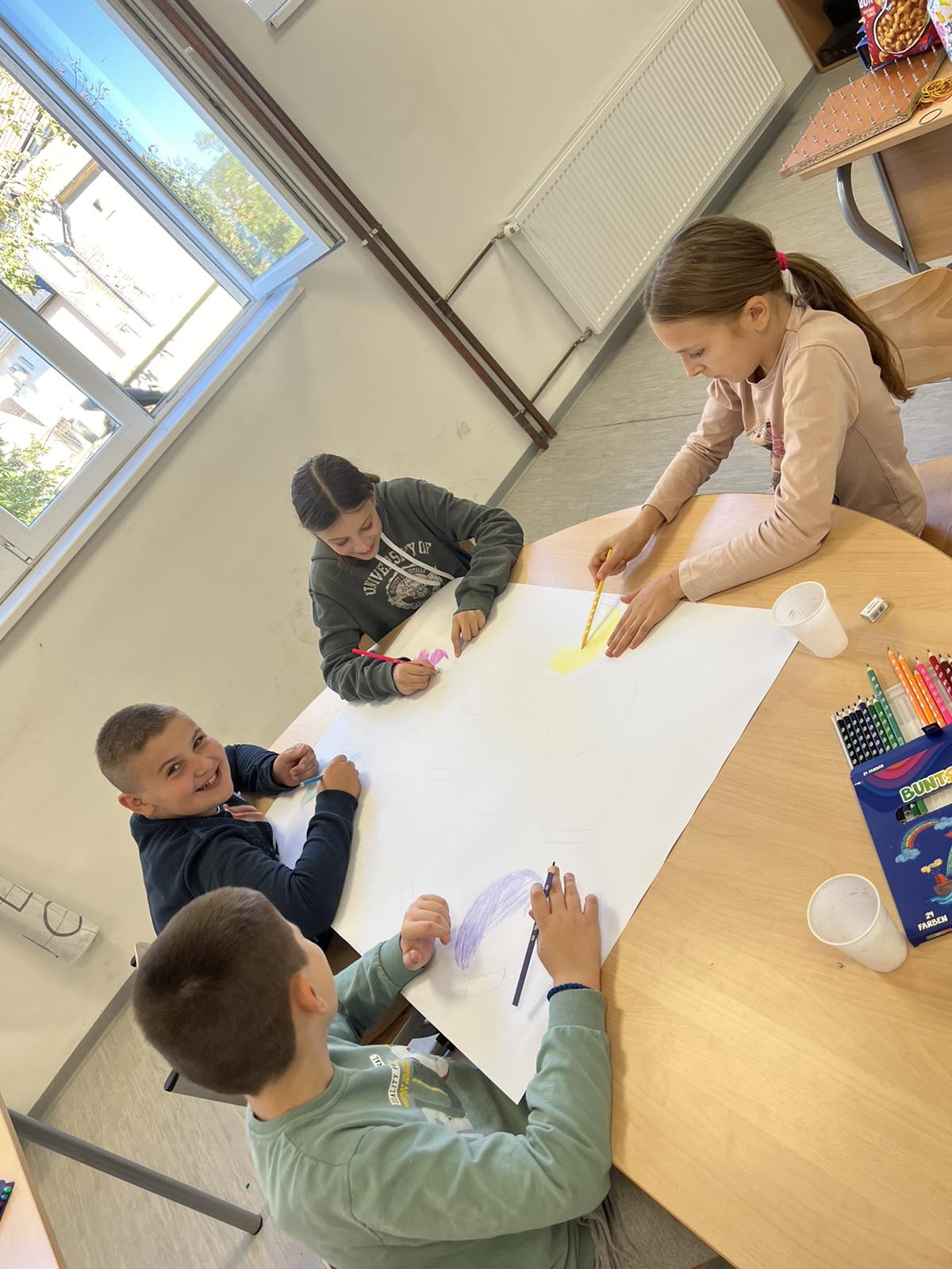 Upoznavanje i druženje obojili su četvrtak, dan kada su naši učenici posjetili Osnovnu školu „19. april“. Zajedno s drugarima iz 4. razreda, učestvovali su u likovnom stvaralaštvu.