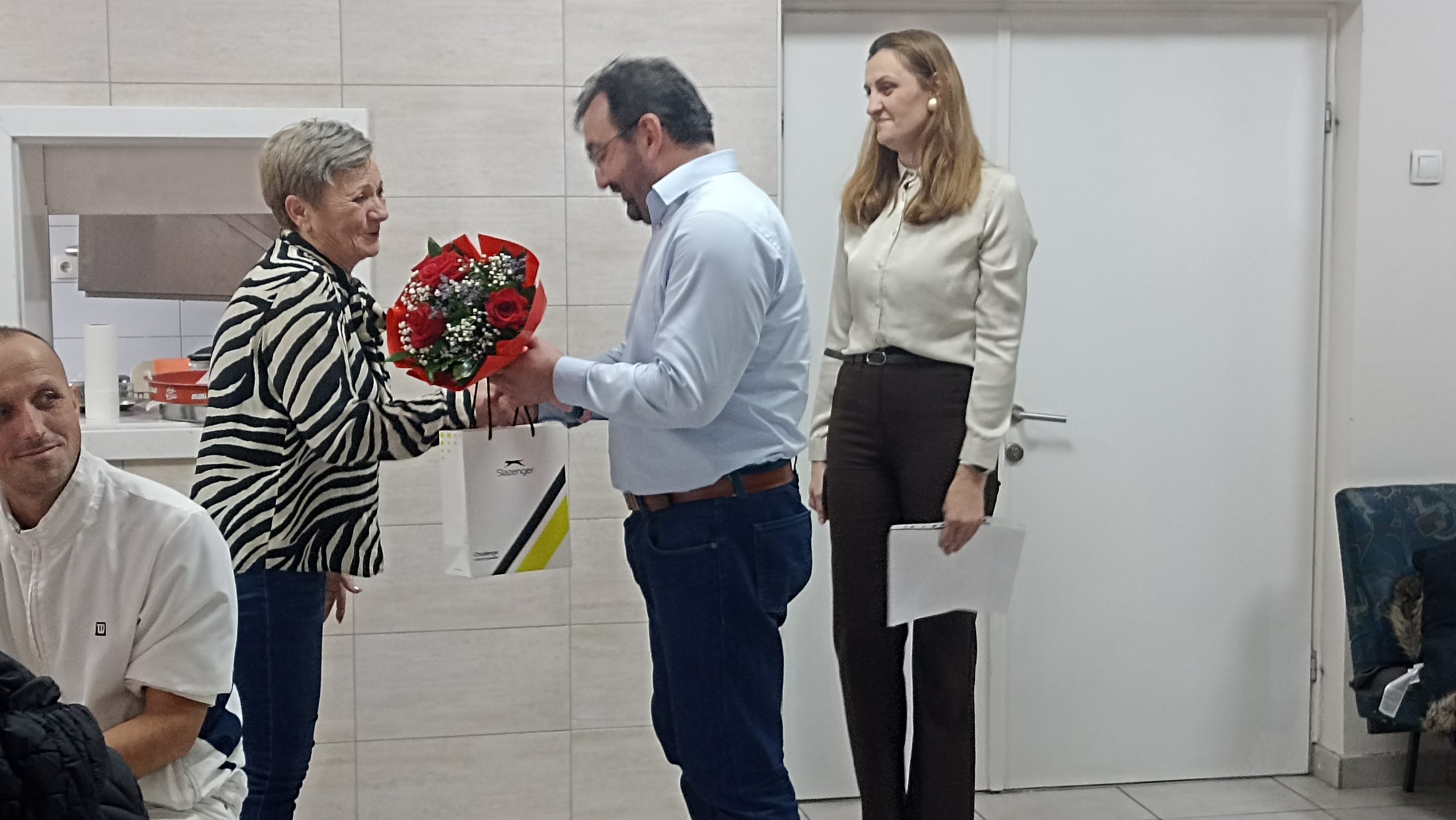 Istovremeno, ispratili smo i našu spremačicu, Božanu Nedić, koja je sa nama provela nekoliko godina, ali je svojom odgovornošću, pouzdanošću i vedrinom osvojila naklonost svih nas. Zahvalili smo joj na trudu i doprinosu koji je učinio da prostorije naše ustanove uvijek izgledaju uredno i prijatno. Poželjeli smo joj srećnu i mirnu penziju, dobro zdravlje i mnogo lijepih dana u godinama koje su pred njom.