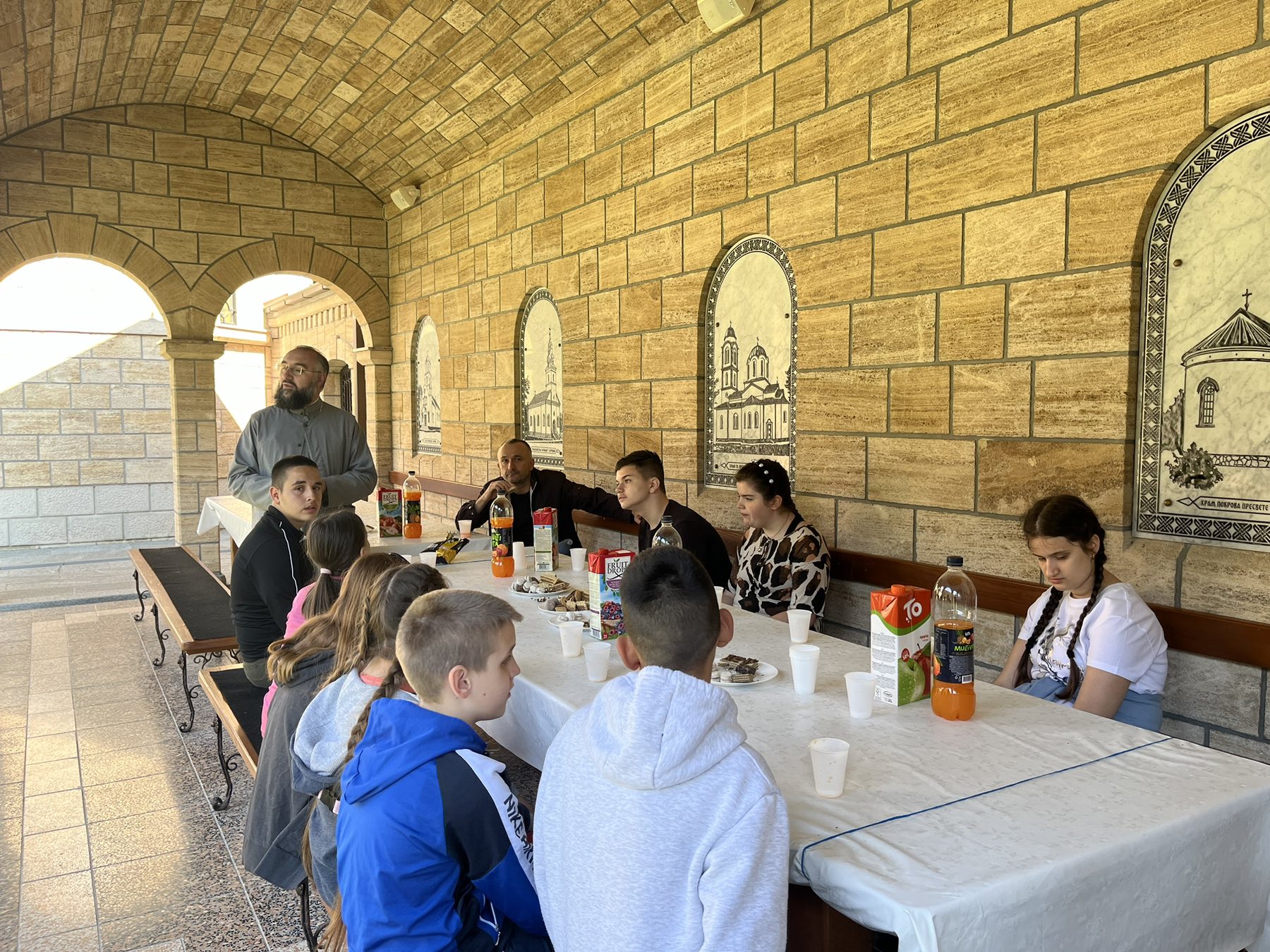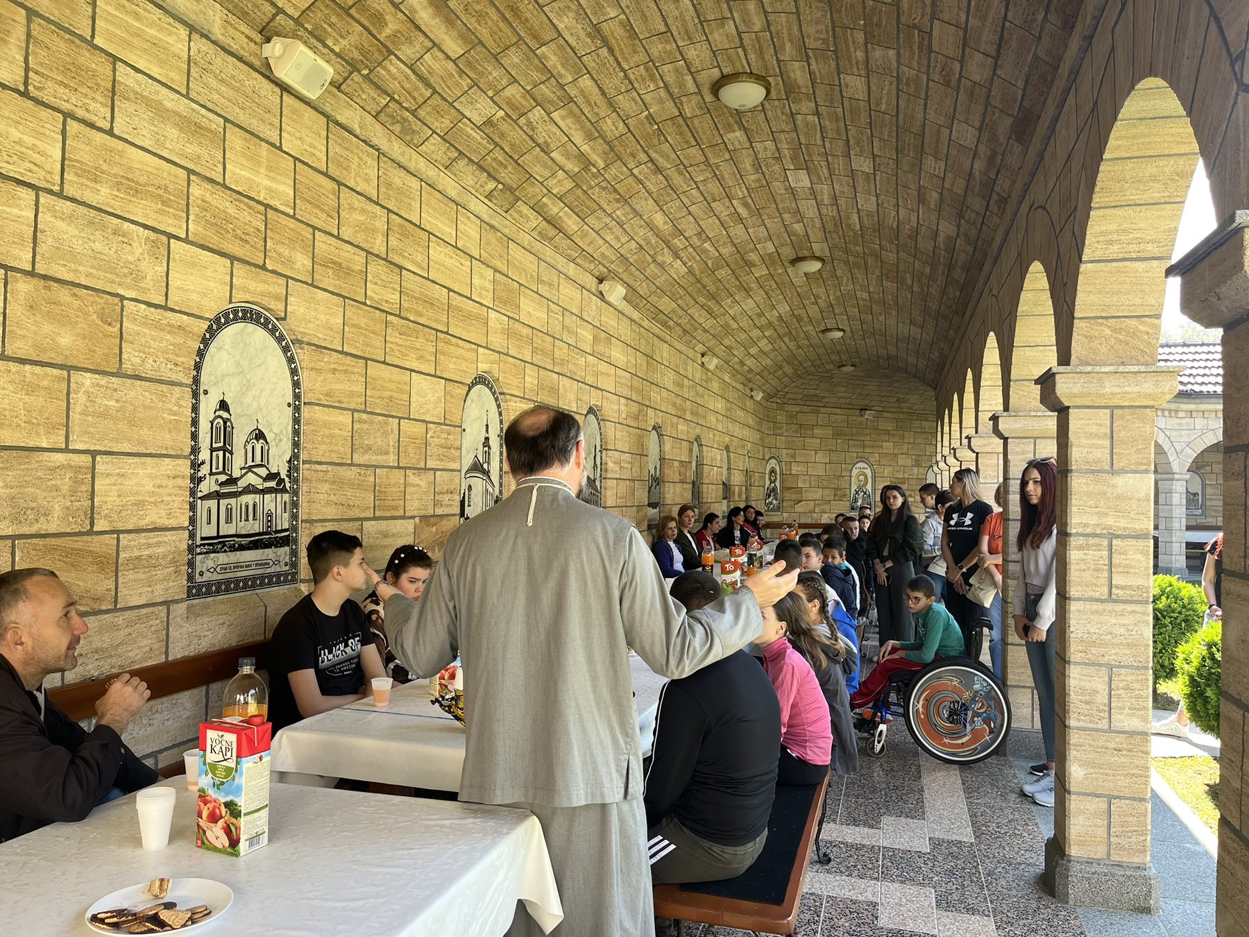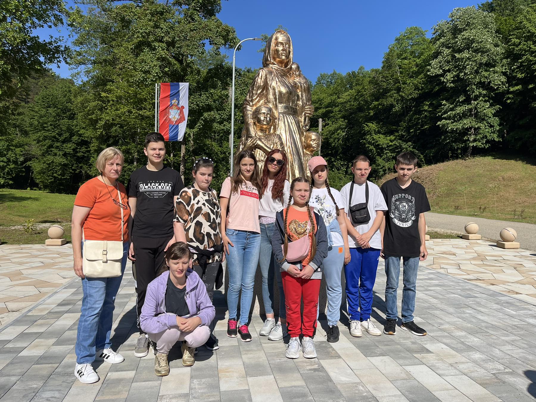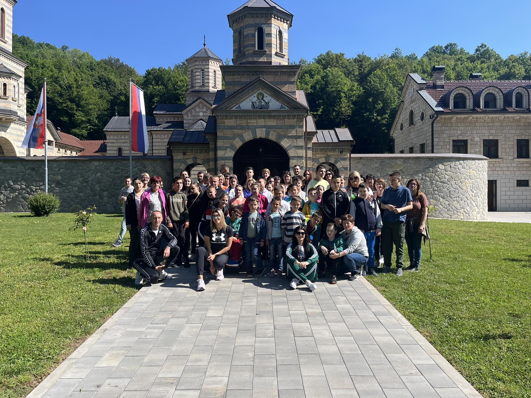 Iguman Teofil nam je ispričao kratku istoriju obnove i izgradnje manastirskog kompleksa, a koji između ostalog obuhvata četiri crkve i spomenik u čast majke. Ovaj spomenik je, na inicijativu igumana Teofila, izradio derventski vajar i akademski slikar Vujadin Malešević. Nakon kratkog predaha uz posluženje koje je pripremilo bratstvo manastira, nastavili smo naše putovanje ka još jednoj planini.